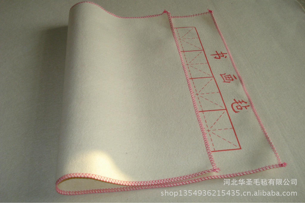 河北华圣毛毡有限公司生产细白工业毛毡、色毛毡、 民用毡、松软毡、抛光毡、羊毛抛光球、毡轮、书画毡、胶粘毛毡、高温阻燃毛毡、覆膜毛毡、各种毡制品零件及羊毛、化纤无纺布加工性质的股份制有限公司,产品型号从特细,细白,半细,半粗,粗杂,彩色多种,选用进口高支澳毛和国产高等级羊毛精梳而成,规格厚度:0.5mm-60mm 密度:0.12g/cm3-0.60g/cm3, 产品标准:Fz/T20015.5/-1998, ISO9002国际质量体系认证企业,市重点企业之一。