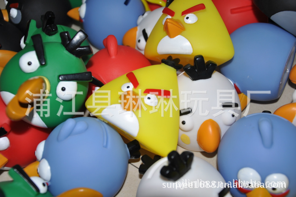 新款现货供应愤怒的小鸟搪胶PVC动漫周边产品,产品的材料是动漫玩具里最流行和常用的PVC搪胶材料!该材料无毒环保,