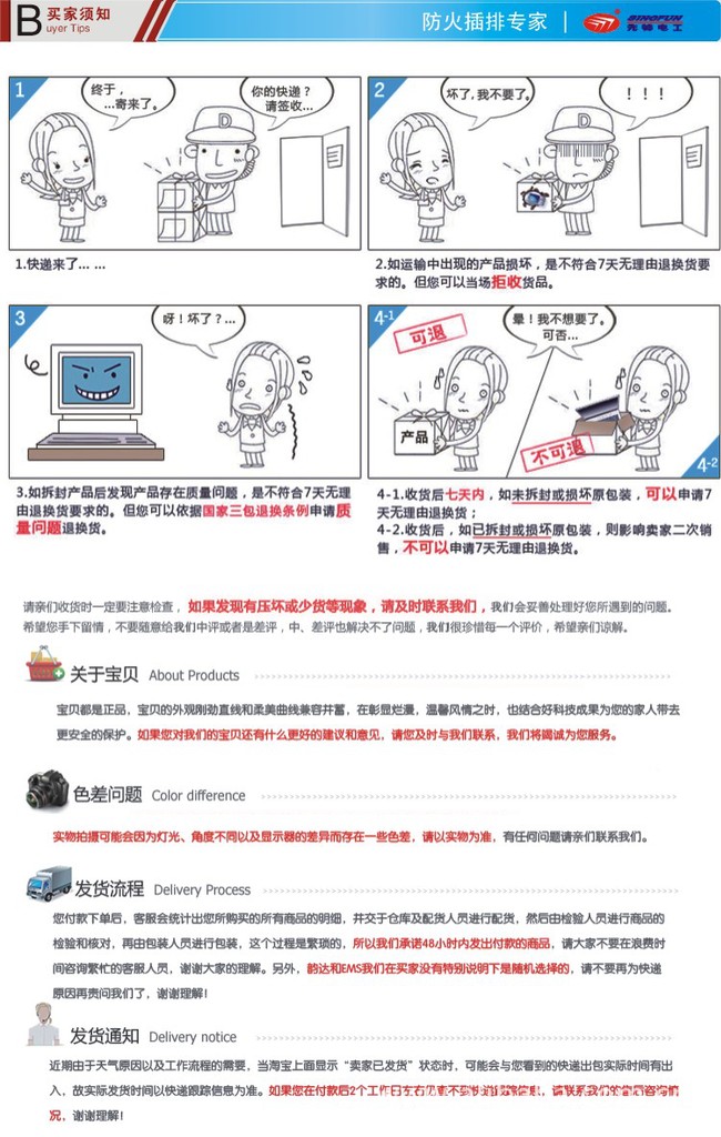 8.如遇有异常声响、冒烟、电线变热、受损、铜片变色等异常情况发生请停止使用,并向购买处问询。