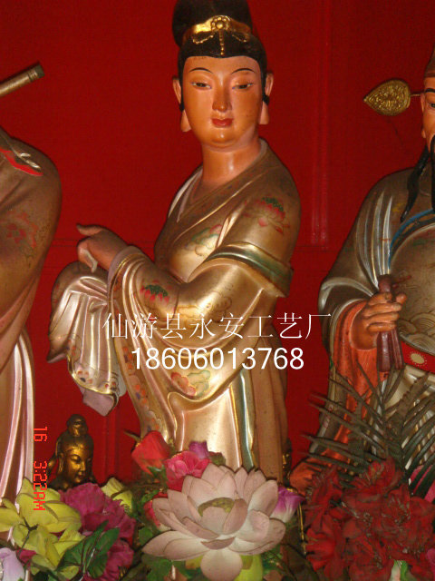 佛像制作是福建省莆田市的特色传统产业,已有一千多年历史,早在唐、宋时期就相当发达,是福建乃至全国佛像发源地之一,仙游县永安工艺厂位于莆田市仙游县,专业从事玻璃钢、脱胎、木雕等佛像的雕刻制作,从泥塑到雕刻到彩绘贴金等全方位工艺本厂都拥有全国一流水平的经验与技术。曾帮助山西五台山普乐寺等众多著名寺庙制作佛像,我们所塑诸佛菩萨圣像皆如法如仪,相好庄严,栩栩如生。大佛的妙相庄严、菩萨的慈祥华贵、罗汉的智睿寸普、天神的英武威猛,竭尽体现着我厂在佛像艺术上的承袭与发展。本厂自成立以来,以诚信为本、弘扬文化为已任,本着高档次、高品质的产品定位,制作了无数各种各样的佛像,我们定做的佛像广泛,我们提供定做国内外任何流派的佛像,包括、道教、密宗等等,价格合理,品质上乘,多年以来我厂的产品得到市场认可,产品在国内外备受欢迎,还远销台湾、日本、新加波。感谢大家对我们的信任与支持,我们将尽一切可能把佛像做得更加神圣与庄严!我们的努力希望得到您的满意。