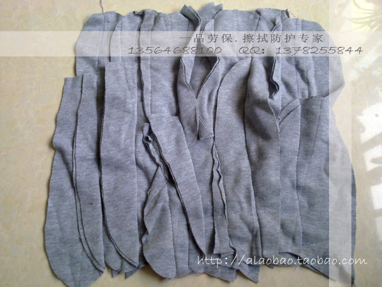 【优点】:全新全棉针织服装刀口料,应用范围广泛,吸油好,不掉毛不褪色。广泛应用于五金机械制造、重型工业制造、化工印刷、家具塑胶喷漆擦拭等等。