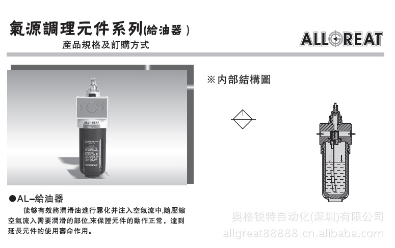 我是外资台湾公司奥格锐特公司的助理莫长杰,台湾奥格锐特采用先进的技术,引用原装进口材质专业铸造。我们的产品:迷你型调压阀系列、二口二位流体、蒸气气阀类、标准型过滤器/调压器/给油器系列、气动执行器、电动缸系列、气缸系列、电磁阀系列、限位开关系列、手动阀系列、定位开关系列、准型气缸类、球塞阀系列、迷你型不锈钢气缸类、油压缓冲器