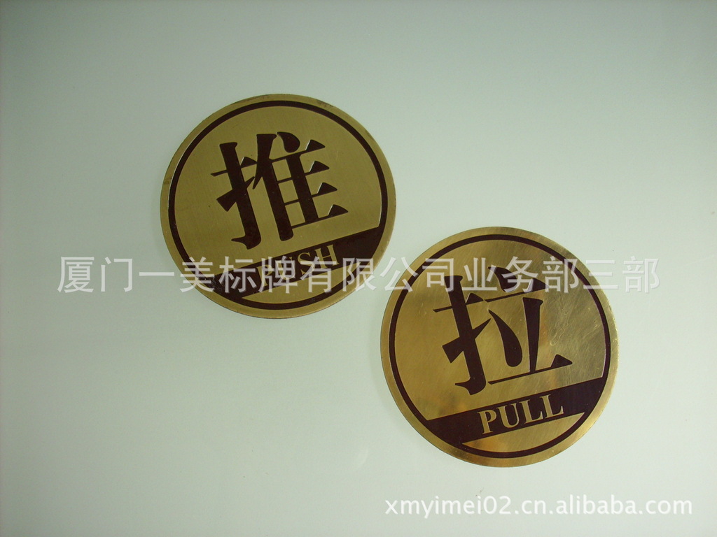 厦门一美标牌有限公司是专业生产各类标识标牌,标志标签,铭牌铭板的厦门标牌厂家。本厂地处现代化滨海新城区——厦门同安。经过9年发展,现已成为福建闽南地区一家专业的具备一般纳税人资格的综合性生产企业。本公司生产的铭牌产品涵盖生活的方方面面。材质有铜,铝,铁,不锈钢,锌铝合金,塑胶,PVC,ABS,PMMA,不干胶等多种选择。工艺有化学腐蚀,丝网印刷,电脑雕刻,冲压,压铸,烤漆,滴胶,滴塑,电镀,氧化。我们有9年的行业经验,专业的技术班底,公司热忱欢迎新老客户来电来函洽谈业务,本公司将竭诚与您携手合作,共创美好未来。