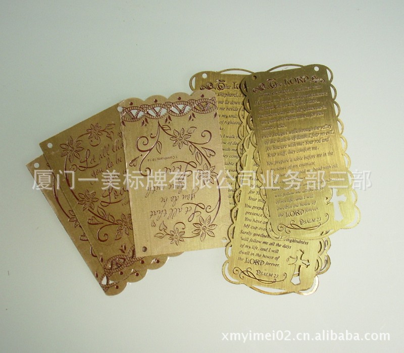 本厂产品种类繁多,从材料上来分有:铜,铁,不锈钢,钛金,黑钛,铝,锌合金等金属材质;非金属材质有:ABS双色板,PMMA压克力,PVC铭板,及PVC软胶商标,硅胶产品,不干胶标签等。产品用途极其广泛,适用于箱包、服饰、鞋帽、礼品、机械、包装等行业。