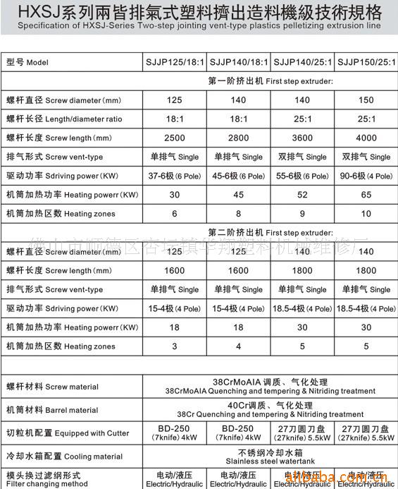 | 切粒机配置 Cutting machine set | 27刀圆刀盘,5.5KW speed control by inverter |