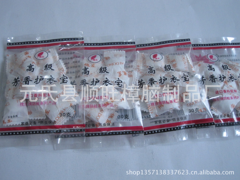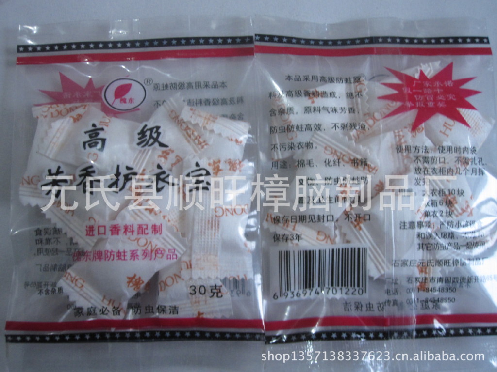 本品采用樟脑及高级香料制造,绝不含萘原料。气味芳香,防虫防蛀高效,不剩残渣,不污染衣物。