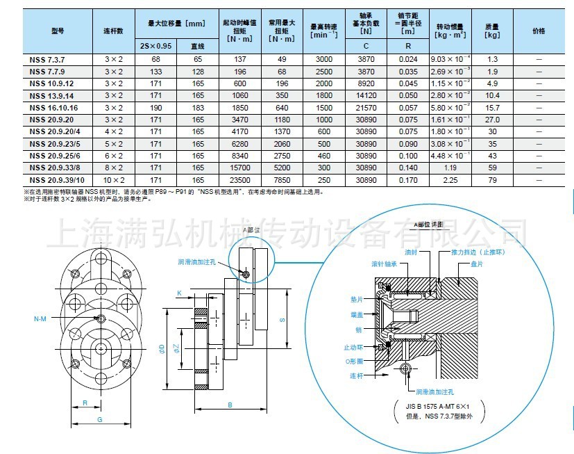 NSS、DL型号是利用链杆的曲柄移动的轴心不同的连接器,从一侧的端圆盘输入的动力通过链杆和中间圆盘,向另一侧的圆盘传动。由链杆的长度决定轴心的移动量,所以此连接器的轴心不同不仅可进行传动,而且还可平行移动旋转中的轴心。备有链杆数为3x2的标准NSS型号和增加链杆数和容许扭矩的准标准NSS型号、链杆数为2x2,可在同一轴上运行的DL型号。型号:NSS型:NSS7.3.7NSS7.7.9NSS10.9.12NSS13.9.14NSS16.10.16NSS20.9.20NSS20.9.20/4NSS20.9.23/5NSS20.9.25/6NSS20.9.33/8NSS20.9.39/10DL型:DL7.7-02DL7.9-03DL10.12-04DL13.14-04DL16.16-04DL20.20-04