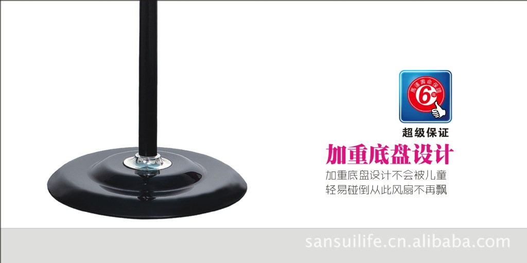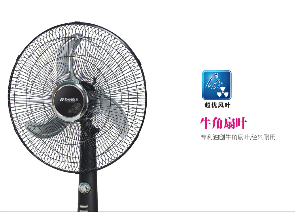 ◆双圈加固1.4*140全新塑钢网罩◆行业可拆卸牛角铝叶◆71*20碟电机,安全、节能、经久耐用◆扇头俯仰角度自由调节、自由升降◆水平自由送风。1小时定时关机(机械)