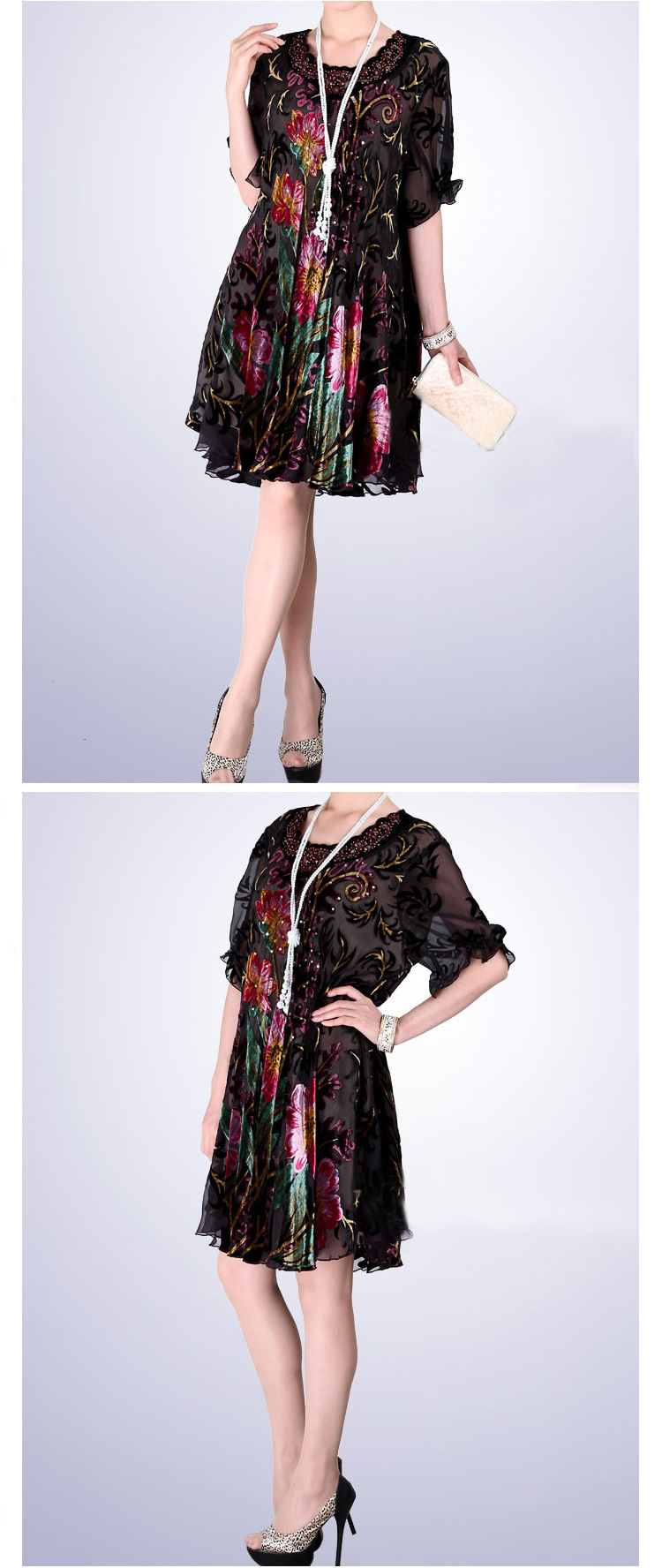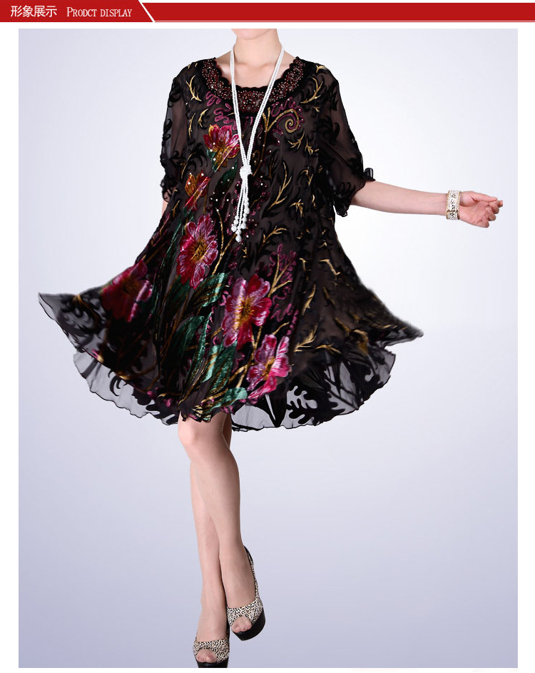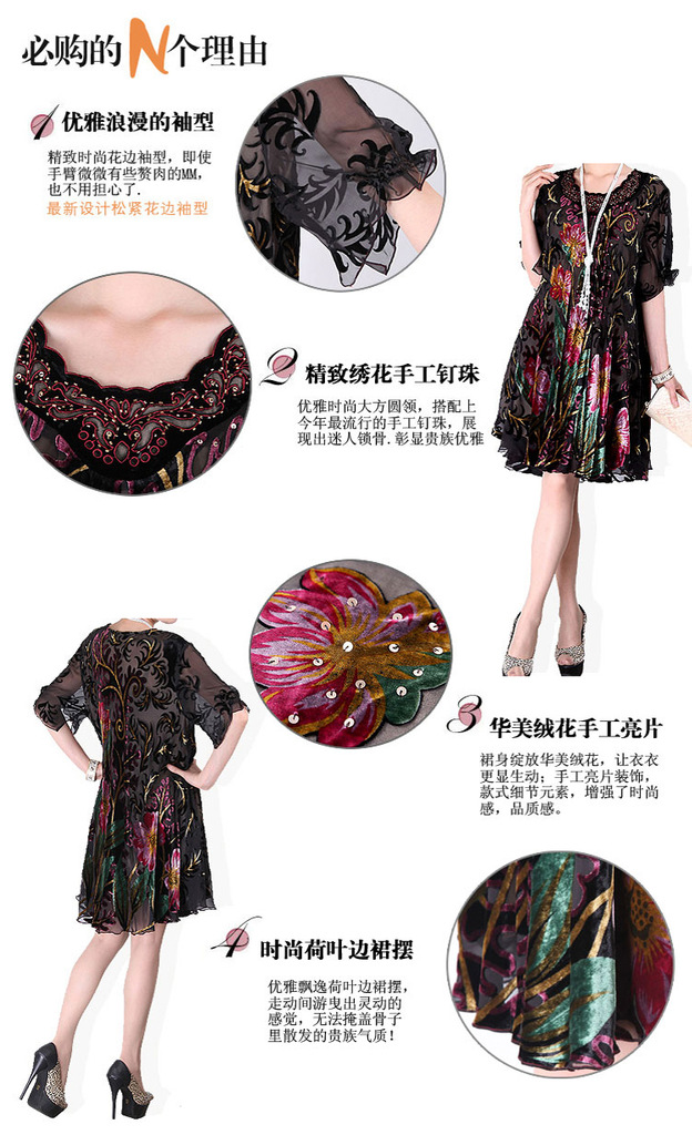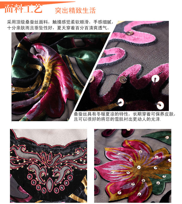 春装连衣裙真丝 13年国际款直供高档重工花纹复古风女装