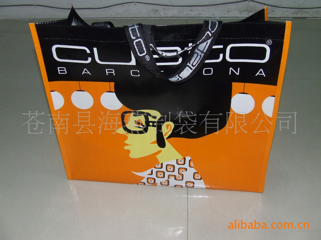 产品特点:采用编织腹合彩印opp,外观精美、款式繁多及其时尚、使用方便、图案生动、色彩鲜艳、做工精致。款式和图案可按照客户要求定制可以根据客户的要求,进行独特的产品设计,承担产品印刷、产品制作一条龙服务。适用于企业单位促销和宣传之用。能很好的为其做广告宣传。
