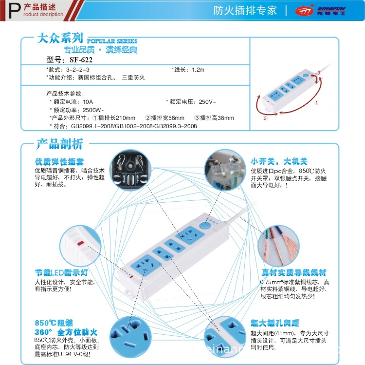 8.如遇有异常声响、冒烟、电线变热、受损、铜片变色等异常情况发生请停止使用,并向购买处问询。