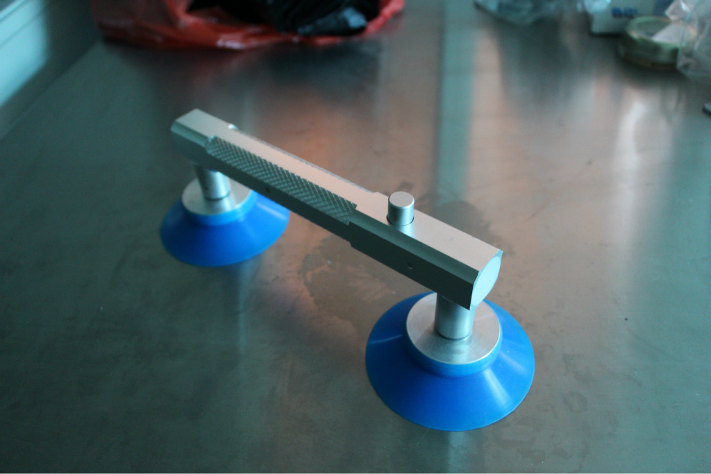 快速吸盘治具:硅胶吸盘(可以选着防静电吸盘),铝合金支架,表面氧化处理,直接在表面上下压即可吸住,放下物体时,轻轻一按按钮即可松开吸盘!
