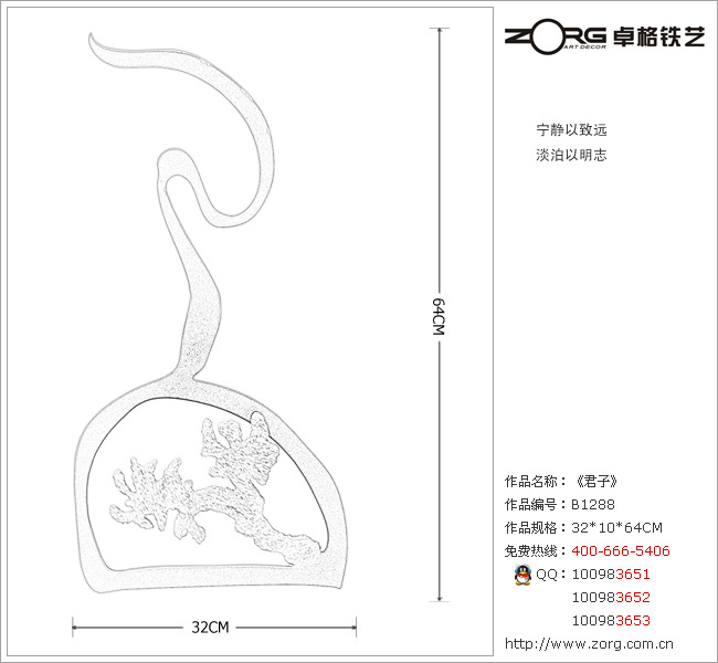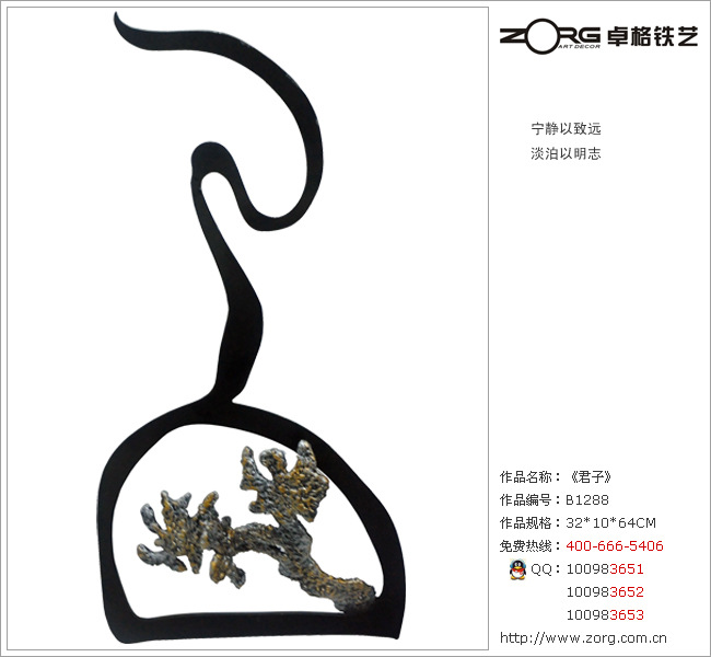 ZORG卓格铁艺B1288号艺术品《君子》,铁艺金属工艺品墙饰壁挂