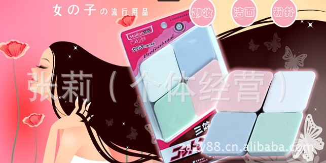用途:老是爱徒手往脸上抹各种东西的人注意了!你可能还不知道粉扑是样多么厉害的东西。活用粉扑可以大大的提高化彩妆的技巧。不要小看小小的一个粉扑,它不仅是你上粉底的工具,更可以发挥多种彩妆功效。会不会活用化妆工具,也是衡量你化妆水平的一个重要标志哦。