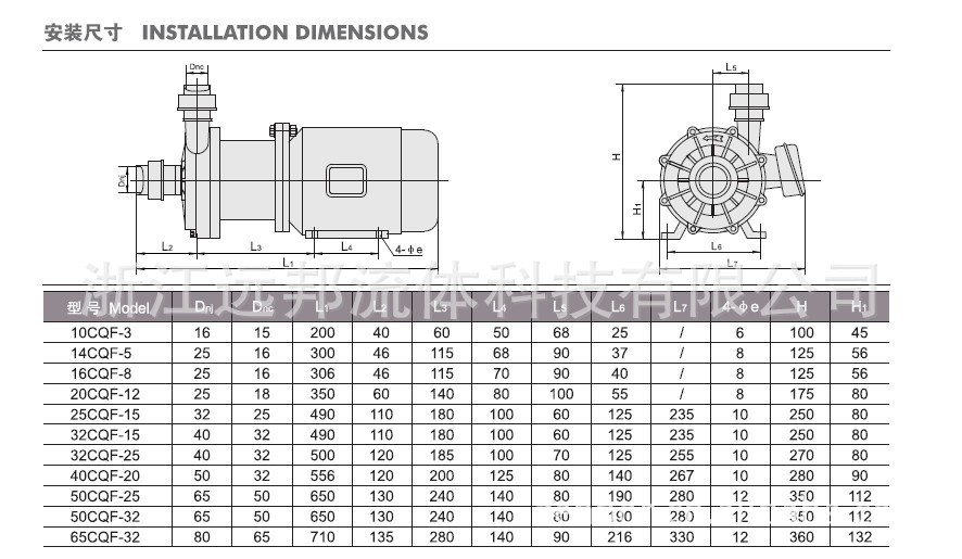 注:表中20CQF-12---65CQF-32都可配防爆电机 |
