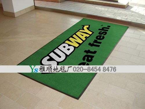【尼龙印花橡胶底】设计师免费设计,可选择个性化Logo和图案设计,突出企业品牌与形像,是宣传推广的新载体,最理想的企业宣传名片之一。 采用尖端奥地利数码喷印技术、颜色鲜艳、层次丰富、图案精细、色度牢固。 表面结构为聚酰胺纤维6.6合股弯头纱,熔点高,它的强度甚至可以超过同样粗细的钢丝,耐磨性优于其它一切纺织纤维,比羊毛高20倍,比棉纤维高出10倍以上,底部为100%NBR橡胶制成,因此,能经得起长久的风吹雨淋,日晒永不褪色,任何气候下不弯曲,不断裂。 适用于企业展厅、销售中心、写字楼、酒店等门口、大堂、电梯间等场所。