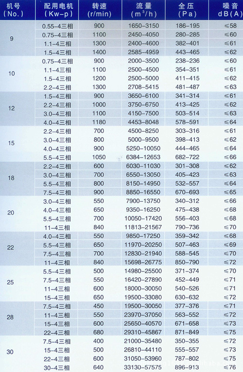 风轮及蜗壳皆采用优质材料精制而成,风轮经动平衡校正,质量保证。轴承采用优质国产或进