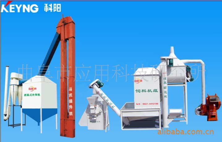 “科阳”牌颗粒饲料机以机械的圆周运动为基础,电机为动力,在摩擦力的作用下,压棍自转,压棍与颗粒之间产生温度,粉状物料经高温糊化在压棍的挤压作用下从模孔中排出,经甩料盘将制成的颗粒送出机外,通过切刀颗粒长短可调。