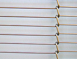 乙字型网带又称乙型网带或食品网带,巧克力网带。乙字型网带的描述具体如下: 乙字型网带 规格:线径0.8mm-3.0mm 材质:201CU 304HC(弹簧钢丝) 用途:用于速冻食品,油炸食品,撒糖机,巧克力涂层与各种食品输送冷却线。 说明:节距分隔一般按用户要求定制,属非标准输送网带。 材质:台湾进口不锈钢丝,不锈钢丝、不锈铁丝、中低碳钢丝、镀锌铁丝、镍铬丝、铁铬铝丝、聚酯丝等。 编织及特点:其组织结构形状有普通编织、加固编织、分段式普通编织等。 用途:广泛用于石油、冶金、食品加工机械、制药、玻璃、印制线路板专用设备等行业。 |