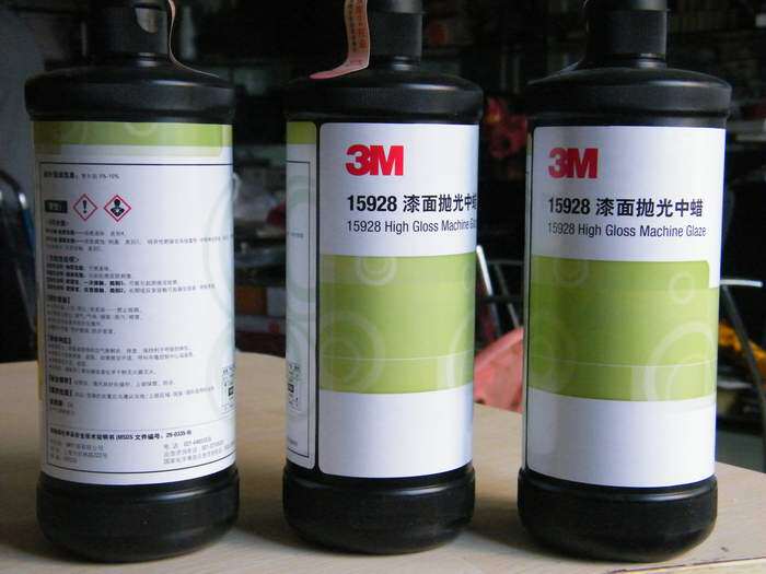 老包装图片 本公司网站:www.weizhiyanmo.com 产品名称:3M15928漆面抛光中蜡 详细说明:箱/12瓶 瓶:900ML 3M15928抛光蜡是一种完全不含蜡和硅酮的油漆漆面处理剂, 是混在溶剂或水中的研磨微粒,简单的说就是一种液体砂纸, 按微粒的大小分粗,中粗,细,超细,手磨五等级抛光液配合3M气动抛光机, 羊毛球能提高抛光效率和抛光效果。