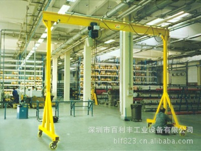 深圳市百利丰工业设备有限公司专业生产龙门架,龙门架主要由横梁、立柱、底盘、导梁和支点五部分组成, 用作升降设备的支架,两柱犹如盘龙柱,形象而曰龙门架 。移动起吊小龙门架是我公司根据中、工厂(公司)日常生产需要搬运设备、仓库进出货,起吊维修重型设备及材料运输的需要,开发出来的新型小型起重龙门架。适用于制造模具、汽修工厂、矿山、工地及需要起重场合。起重小龙门架主要有二种规格:1.在地面上全方位移动的龙门架,带刹车承重轮可在地面上移动,适合在地面上起吊物品;2.用钢轨固定安装在楼板面或梁上,通过电动或人力葫芦,实现起重机械化。可减少人力,降低生产运营成本,提高工作效率。我司可根据客户的现场情况定做不同的产品。移动小龙门架吊运葫芦可选用手拉葫芦或电动葫芦,产品实用性强。