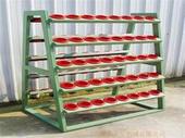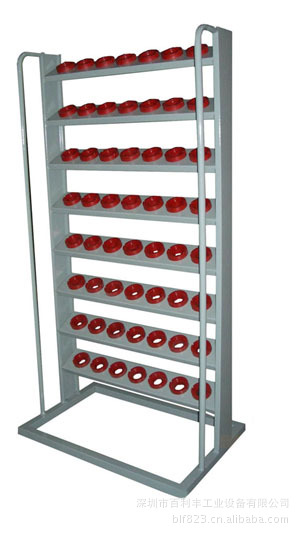 刀具架是用来存放、搬运刀具的装备,可存BT30、BT40、BT50、HSK63、HSK100等多种型号的刀具。多边成型的整体式侧板上有模数化的人字孔,可将刀座按水平或15°、30°倾斜放置,方便多种刀具的存取。根据需要可以选择带抽屉或不带抽屉的刀具车。