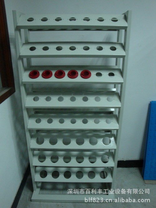 刀具架,刀套,刀座,BT30,BT40,BT50,简易刀具架 我司生产各种规格刀具架,CNC数控刀具架,BT型数控刀具架,移动式刀具架,组合刀具架,单斜式刀具架,双斜式刀具架,简易刀具架,刀具存放架等CNC刀具存储器具,满足各种刀套的放置,适合工厂加工中心车间、仓库存放刀把。主要具有以下特点:1、采用挂片结构,可配合BT、HSK系列标准刀具座或刀盘使用2、多边成型的整体式侧板上有模数化的人字孔,可将刀具座挂板按水平或15、30倾斜放置,方便多种刀具的存取。3、多台刀具架可以成组并列放置,使刀具存储一目了然。 4、根据刀具有存储的需要,可以选用前面带门的封闭式结构。5、全螺纹结构,安装方便。