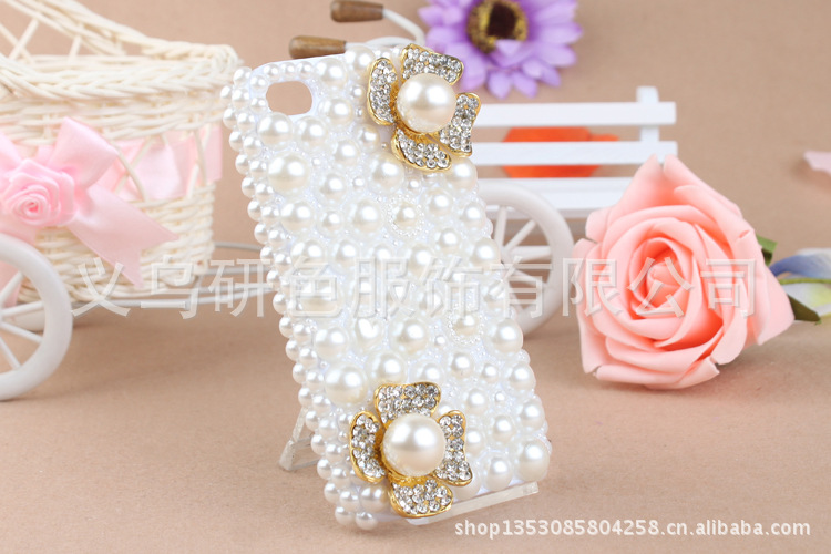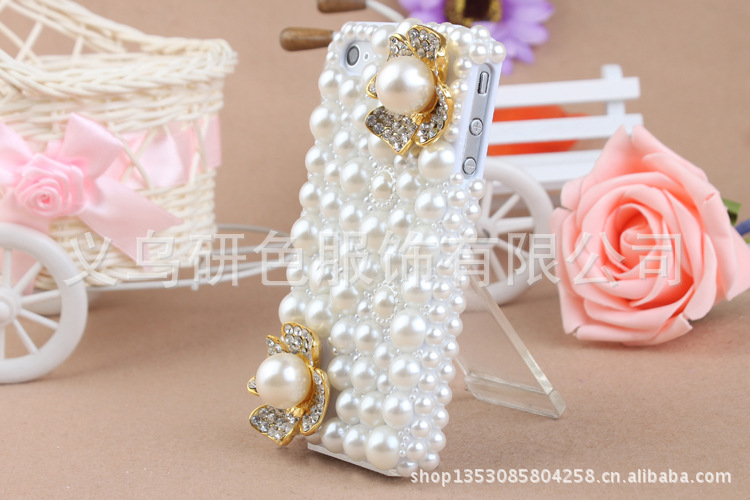IPHONE贴钻手机壳 珍珠小花 水钻苹果手机壳