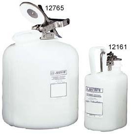 自动关闭式腐蚀性液体安全罐(HDPF罐/白色) 高密度聚乙烯自动关闭式腐蚀性液体安全罐,为你提供安全的腐蚀性液体收集容器。 产品描述: 1.采用高密度聚脂(High-density Polythylene)材质、防酸、防腐液。 2.罐上有刻度(升、夸脱、加仑),让使用者可以准确地注入或分配。 3.倾倒口自动闭合开关,无施力情况下,完全隔离外部不可控因素对罐体内部的液体的影响,提供更为密封的效果。 4.产品通过FM认证。 5.安全罐的有金属配件均采用不锈钢,具有较好的耐化学腐蚀性