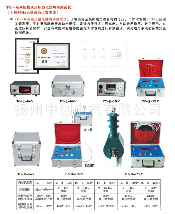 2009年最新《安全操作规程》的规定,高压验电器在使用前必须在有电的高压线路或工频高压发生器上进行实验,确认高压验电器工作良好后再进行对高压线路验电检测。为此我公司技术部征求多家电力公司的意见要求,并设计生产了SBTC-II—10型、SBTC-II—35型、SBTC-II-110KV型、SBTC-II—220型系列验电器高压发生器,产品具有对验电器启动电压的检测功能,该发生器输出纯正弦波50Hz工频高压,更真实的模拟了国家电网电压的电气参数,并具有关机复位、开机输出低电压功能,确保操作人员更安全。
