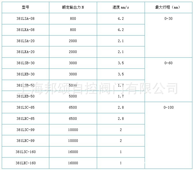产品概述3810L型系列直行程全电子式电动执行器,是以AC220单相交流电源作为驱动电源,直接接受来自DCS、PLC系统或调节仪表操作器的DC4~20mA、DC0~10mA或DC1~5V控制信号来运转的全电子执行机构。电子式控制单元采用最先进的混合集成电路,被设计成匣子形状,包含完整的保护功能,可现场控制或远程控制,并用树脂浇铸密封。驱动电机采用AC可逆电机,反馈量检测采用高性能导电塑料电位器,是具有1/250分辨能力的高可靠性经济类型产品。该执行机构几乎具备了调节本身所需求的各种动作变换功能以及开度信号功能和手动功能等。产品特点1、执行器设计有伺服系统(无需另配伺服放大器),只需接入DC4~20mA(或DC1~5V)信号和AC220V单相电源即可工作。内设接线端子,接线极为简单方便。2、执行器的关键部件─控制器,采用最先进的混合集成电路,用树脂密封浇铸,外形为匣状,体积小,可靠性高。3、驱动量的反馈检测采用高性能导电塑料电位器,分辨率<0.4%。4、具备自诊断功能,当发生故障时,控制器上的指示灯会立即发出指示信号。5、用状态选择开关可以设定断信号时,(阀芯处于全开,全闭或自锁状态)。6、用状态选择开关可以设定(正、反动作)。7、用状态选择开关可以设定输入信号为(DC4~20mA或DC1~5V)。8、调整工作零点(始点)和行程(终点)简单易行。9、当突然断电时,能确保阀芯自锁。10、采用同步皮带传动,有效降低了噪音。11、延时保护功能,额定负载时,能实行状态自锁,故障发生时,能立即起动保护,并可反向运行取消延时保护。