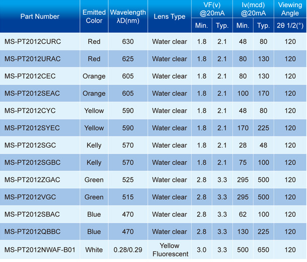 产品描述: 光强高,功耗低,寿命长,可靠性好,广泛用于各类室内外的照明,显示指示,背光等领域。