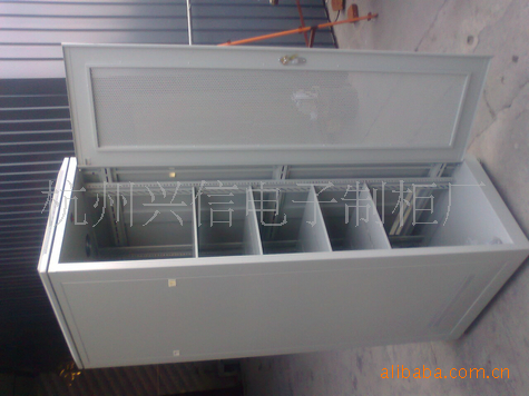 顶盖采用合式设计固定于框架便于装拆,顶配两台高速风扇便于排热,通风。前门玻璃观察窗,侧后门采用扑盖式结构,插扣式固定,方便、牢固、安全。底座配有三式底板, 开口可任意调节,方便电缆的进出,门锁是用最新旋按棒式门锁,提高了机柜的档次。底座有四个腰圆孔,方便进线,可固定于地面。可装移动带落地固定脚轮。颜色有可由客户 选择。(一般为淡蓝色)