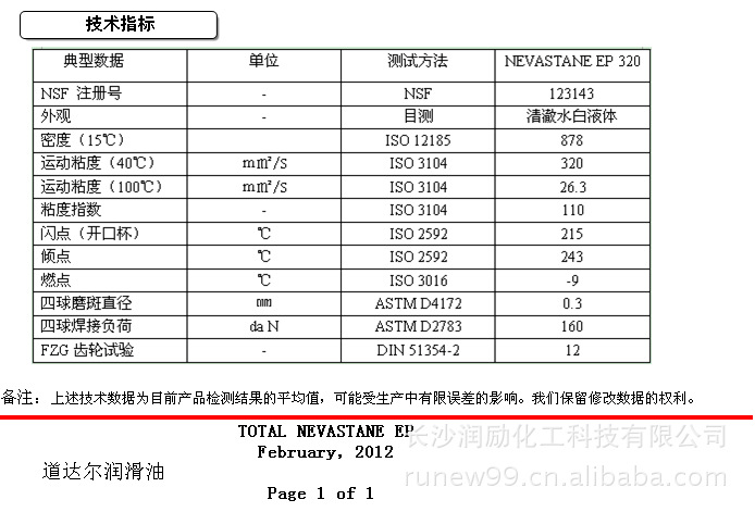 TOTAL NEVASTANE EP 道达尔食品级润滑油