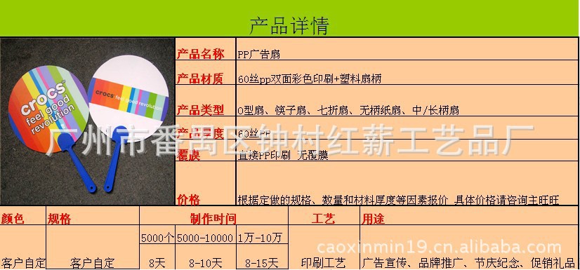 注意:广告扇厚度:50丝--70丝(标准厚度60丝)