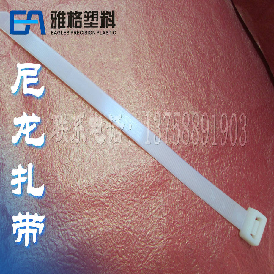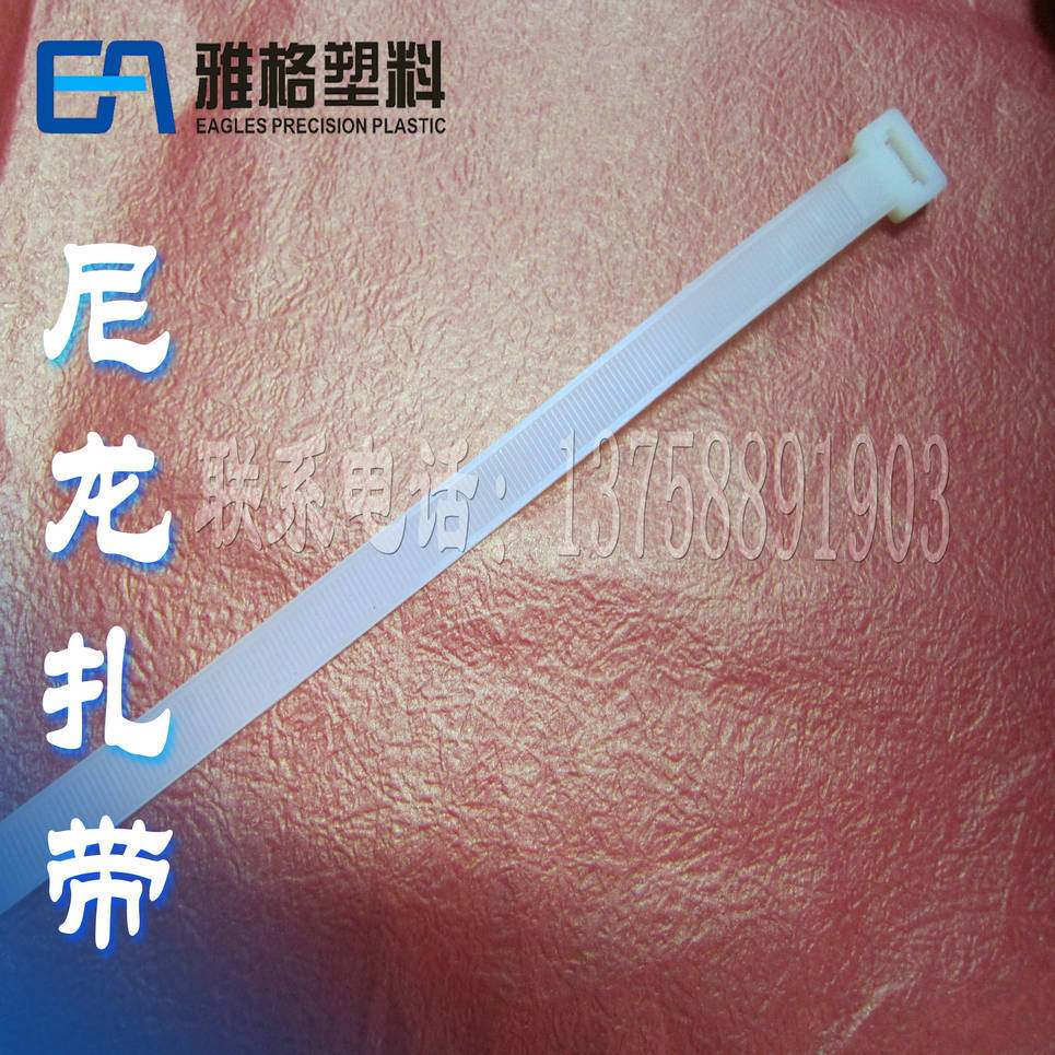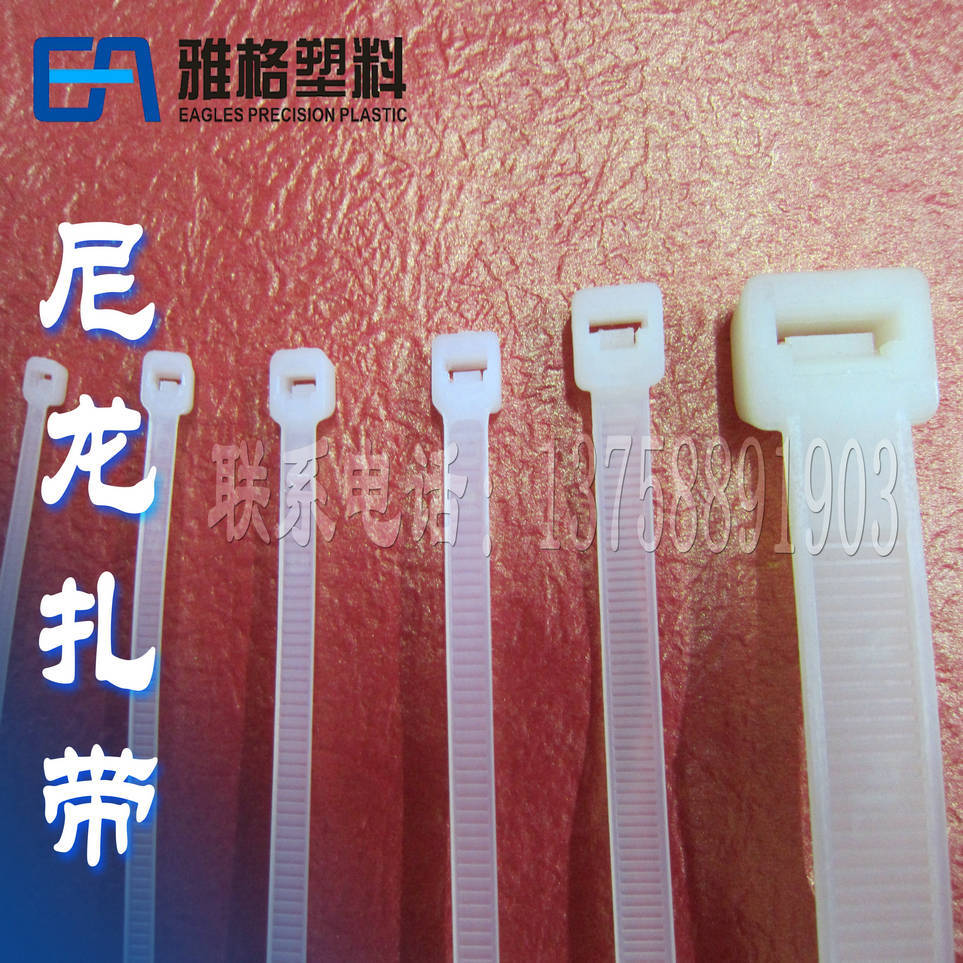 乐清市雅格精密塑料有限公司是一家专业生产尼龙扎带的厂家,在尼龙扎带行业有一定的价格,质量优势。在温州尼龙扎带行业有一定的美誉度。 尼龙扎带根据用途可分为以下几类: 自锁式尼龙扎带 材质:采用UL认可之尼龙66材料制成,防火等级94V-2,耐酸、耐蚀、绝缘性良好,不易老化、承受力强。 操作温度:-35℃~85℃ 可松式尼龙扎带 · 材质:UL认可之尼龙66料制成 · 特点:可以松开重复使用 珠孔式尼龙扎带 · 材质:UL合格之NYLON66(本色),防火等级94V-2,不易老化。. · 用途:一般电源线之绑扎,可再松开重复使用。 标牌式尼龙扎带 · 材质:UL合格之NYLON66防火等级94V-2,不易老化。 · 特别:扎带前端设有白标牌,可用油性笔在上面标志记号 带牌扎带(内标) · 材质:UL合格之NYLON66防火等级94V-2,不易老化。 · 特别:扎带前端设有白标牌,可用油性笔在上面标志记号 插销式扎带 · 材质:采用UL认可尼龙66料制成,防火等级94V-2,耐酸,耐蚀、绝缘性良好、不易老化、承受力特强。 · 使用方法:先将机版钻孔,然后把扎带插入孔内,再将电线扎紧即可。 相信我们,选择雅格,受益无穷!