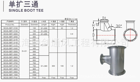 品名:不锈钢特氟龙单阔三通、Single boot Tee、Lateral tee