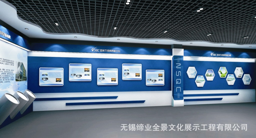 国家不锈钢质检中心展厅设计装修、江苏锦绣铝业企业产品陈列室设计装修、无锡质检展厅设计施工