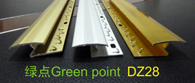 述明:地毯连接条用于地毯与其它材质地面间过渡,,铝合金底座附有突出锯齿紧扣地毯底部以防止脱落,使用钢钉施工。