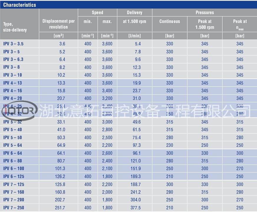 VOITH福伊特齿轮泵IPV系列性能参数: