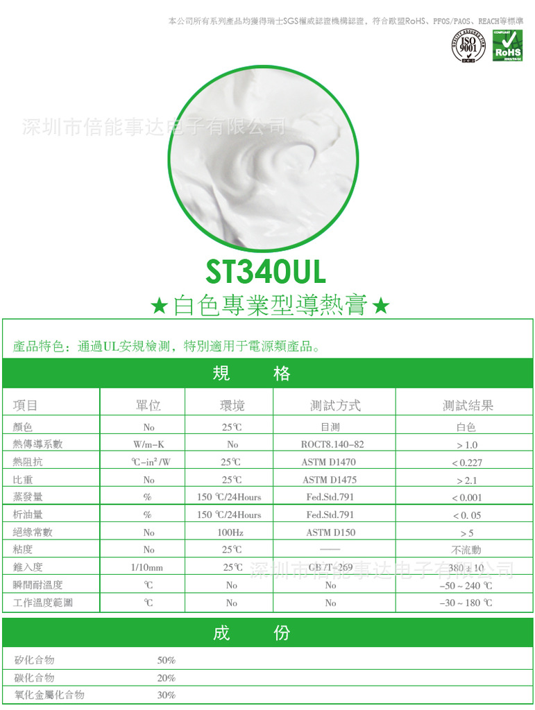本产品具有高热传导,高绝缘,高耐温,长时间暴露不会风干,不易挥发,无毒、无味、无腐蚀性。