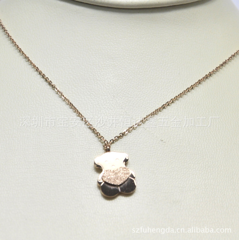 钛钢项链 不锈钢饰品批发 饰品厂家 韩式项链 热销压沙心小熊项链