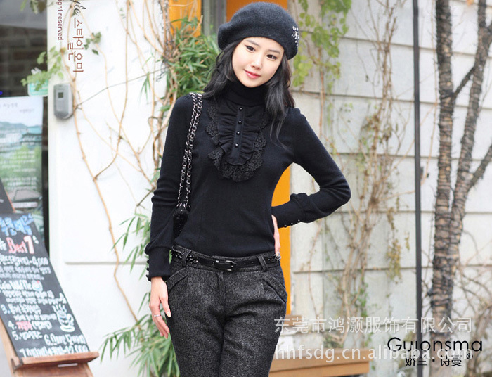 2012秋装新款 娇兰诗蔓女装GW52197百搭修身撞蕾丝套衫