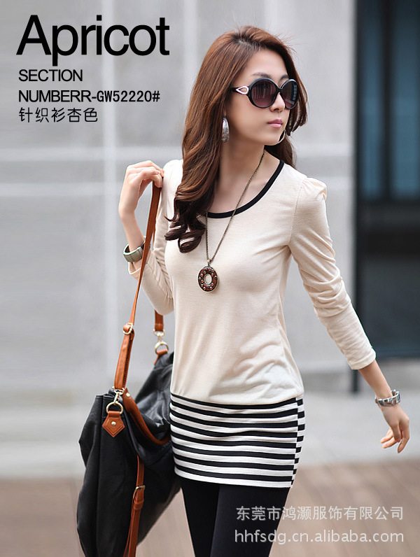 2012秋装新款 娇兰诗蔓GW52220时尚休闲条纹拼接针织衫
