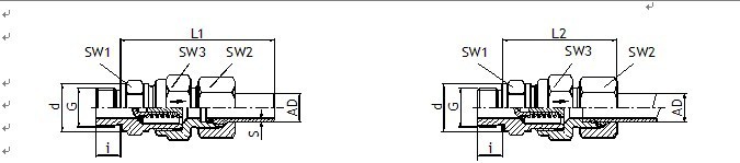 系 列 | 焊接式 | 卡套式 | 扩口式 | 单向阀阀体 型 号 | 压力bar | 管径 AD | G | L1 | L2 | L3 | L4 | d | i | SW1 | SW2 | SW3 | M | 轻 系 列 L | W- | C- | F- | RV-L06G1/8WD | 315 | 6 | G1/8″ | 60.0 | 43.0 | 28.0 | 48.5 | 14.0 | 8 | 19 | 14 | 17 | M12×1.5 | W- | C- | F- | RV-L08G1/4WD | 8 | G1/4″ | 62.0 | 45.0 | 30.0 | 51.5 | 19.0 | 12 | 24 | 17 | 22 | M14×1.5 | W- | C- | F- | RV-L10G1/4WD | 10 | G1/4″ | 72.0 | 53.5 | 38.5 | 62.5 | 19.0 | 12 | 27 | 19 | 24 | M16×1.5 | W- | C- | F- | RV-L12G3/8WD | 12 | G3/8″ | 76.0 | 57.5 | 42.5 | 67.0 | 22.0 | 12 | 32 | 22 | 27 | M18×1.5 | W- | C- | F- | RV-L15G1/2WD | 15 | G1/2″ | 86.5 | 63.5 | 48.5 | 74.0 | 27.0 | 14 | 36 | 27 | 32 | M22×1.5 | W- | C- | F- | RV-L18G1/2WD | 250 | 18 | G1/2″ | 89.5 | 66.5 | 50.0 | 77.0 | 27.0 | 14 | 41 | 32 | 38 | M26×1.5 | W- | C- | F- | RV-L22G3/4WD | 22 | G3/4″ | 96.0 | 71.5 | 55.0 | 85.5 | 32.0 | 16 | 50 | 36 | 46 | M30×2 | W- | C- | F- | RV-L28G1WD | 28 | G1″ | 107.5 | 79.5 | 63.0 | 94.5 | 40.0 | 18 | 60 | 41 | 55 | M36×2 | W- | C- | F- | RV-L35G11/4WD | 35 | G11/4″ | 120.0 | 90.5 | 69.0 | 105.0 | 50.0 | 20 | 70 | 50 | 65 | M45×2 | W- | C- | F- | RV-L42G11/2WD | 42 | G11/2″ | 121.0 | 92.0 | 69.0 | 109.0 | 55.0 | 22 | 70 | 60 | 65 | M52×2 | 重 系 列 S | W- | C- | F- | RV-S06G1/4WD | 400 | 6 | G1/4″ | 63.5 | 46.5 | 31.5 | 52.0 | 19.0 | 12 | 19 | 17 | 19 | M14×1.5 | W- | C- | F- | RV-S08G1/4WD | 8 | G1/4″ | 63.5 | 46.5 | 31.5 | 53.0 | 19.0 | 12 | 19 | 19 | 19 | M16×1.5 | W- | C- | F- | RV-S10G3/8WD | 10 | G3/8″ | 71.5 | 54.5 | 38.0 | 62.5 | 22.0 | 12 | 24 | 22 | 22 | M18×1.5 | W- | C- | F- | RV-S12G3/8WD | 12 | G3/8″ | 74.5 | 57.5 | 41.0 | 66.0 | 22.0 | 12 | 27 | 24 | 24 | M20×1.5 | W- | C- | F- | RV-S14G1/2WD | 315 | 14 | G1/2″ | 84.5 | 62.5 | 44.5 | 72.0 | 27.0 | 14 | 32 | 27 | 27 | M22×1.5 | W- | C- | F- | RV-S16G1/2WD | 16 | G1/2″ | 88.5 | 66.5 | 48.0 | 79.0 | 27.0 | 14 | 36 | 30 | 32 | M24×1.5 |