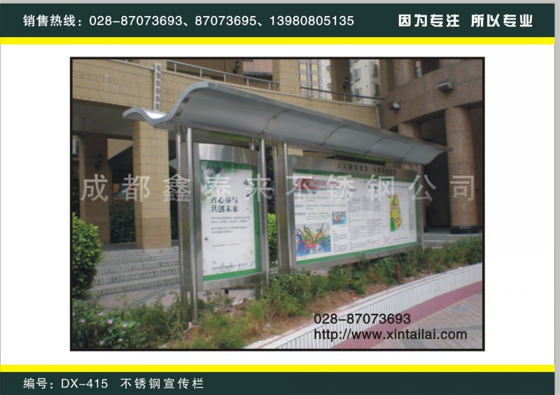 成都鑫泰来不锈钢工程公司专注不锈钢市政灯箱工程、宣传栏和不锈钢产品生产。