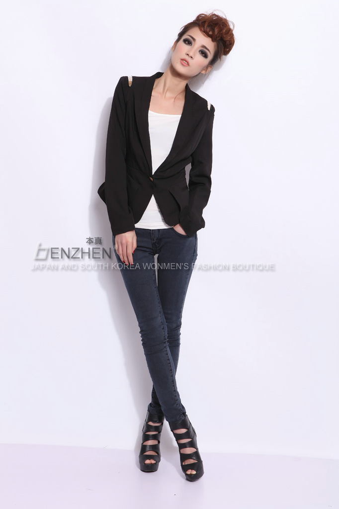 新款 曼休妮西服领单扣短外套 女