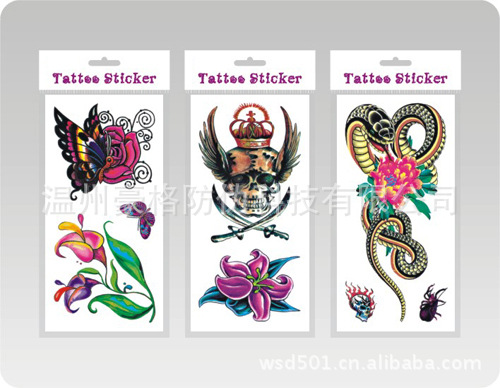 精美图案转移到人体皮肤上的一种时尚贴纸,它的最大特点是即迎合了时尚潮流展示你的个性,又能体现出您的魅力,故倍受时尚青年男女和少年儿童的青睐。