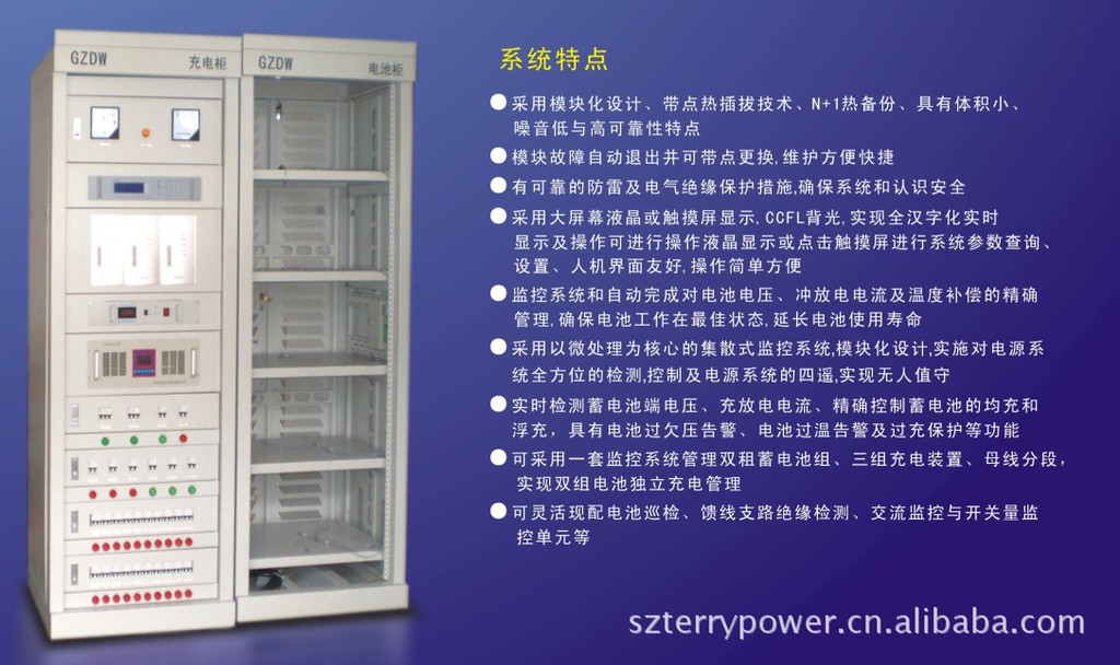 GZDW高频开关直流电源是我公司专为大容量容量系统而设计;适合大型型开关站、大型用户变电站、智能大厦配电等场合。系统由整流模块、监控模块、降压硅链、配电单元和电池安装单元构成;具有体积小、结构简单、独立构成系统等特点;监控模块采用LCD汉字菜单显示,系统监控和电池智能化管理功能完善,具有与自动化系统连接的四遥接口,提供RS232和RS485两种通讯选择,提供RTU、CDT两种通讯规约。