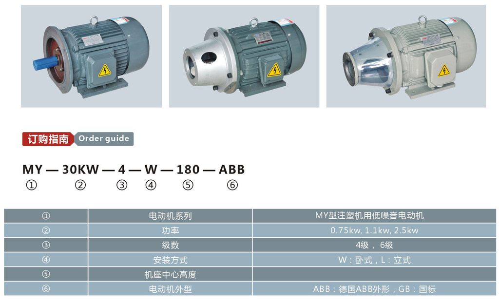 MY型电动机是我公司在消化、吸收国内制造Y系列电动机的基础上而改进的低噪音新型电动机的最新产品,主要应用在注塑机、压铸件硫化机、大吨位轴压机等大功率设备。